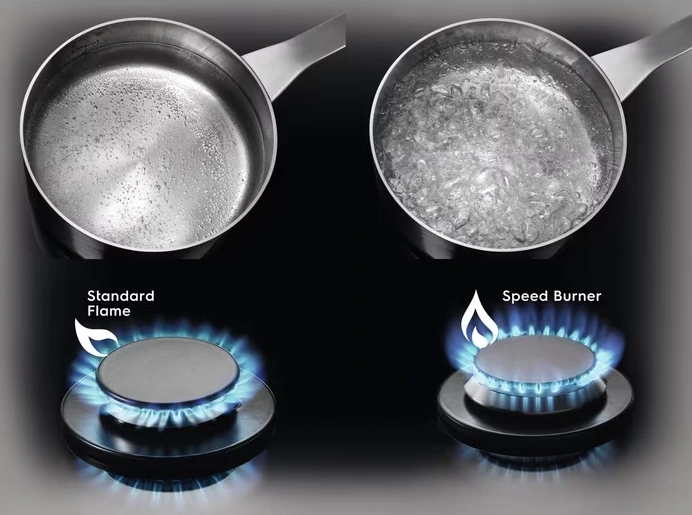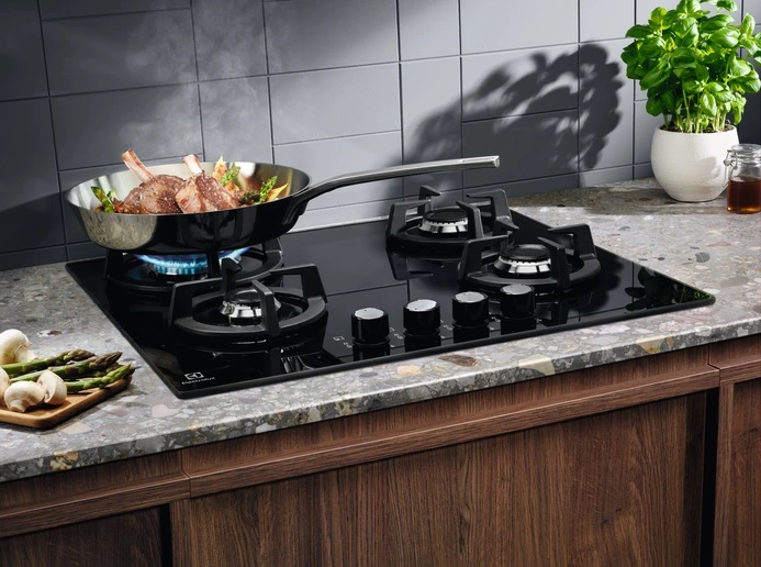 Швидкісна конфорка цієї газової варильної поверхні від Electrolux розроблена для швидкого досягнення дна каструль і сковорідок, забезпечуючи швидше та потужніше нагрівання, при цьому заощаджуючи до 20% на енергії. Потужне нагрівання для повнішого смаку. Пальник «мульти-корона» конфорки вок 4k розроблений для забезпечення більш потужного полум'я, надаючи додаткової потужності для готування справжніх страв азіатської кухні. Елегантність без зусиль. Скляну поверхню варильної панелі легко витирати, підтримуючи охайний та чистий вигляд кухні. Точне регулювання полум'я. Повністю контролюйте варильну поверхню завдяки чутливим газовим кранам. Вони допомагають легко регулювати рівень полум'я, щоб завжди готувати з потрібним рівнем нагрівання. Безпека без роздумів. Газова варильна поверхня оснащена автоматичною функцією безпеки, яка вимикає газ у випадку раптового згасання полум'я.