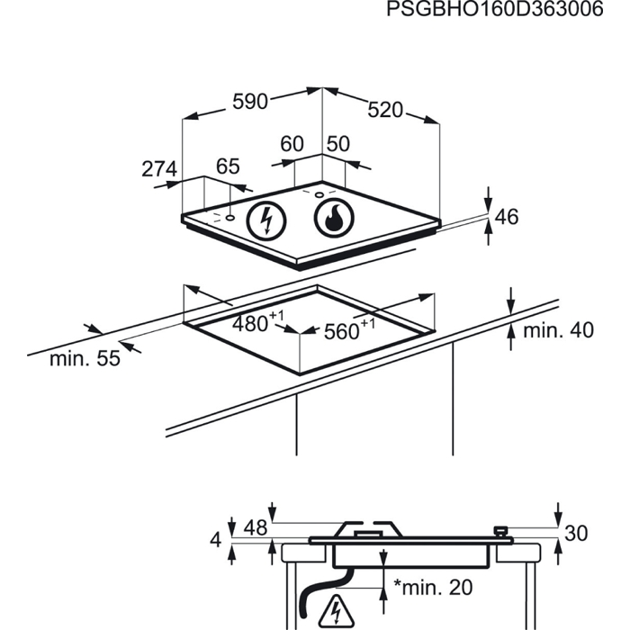 Варильна поверхня Electrolux газова на склі Rococo, 60см, чавун, шампань