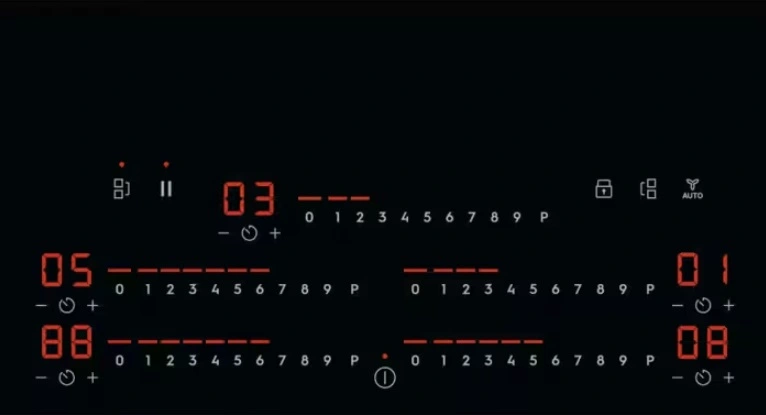 - Таймер, распознавание посуды, индикаторы остаточного тепла, блокировка