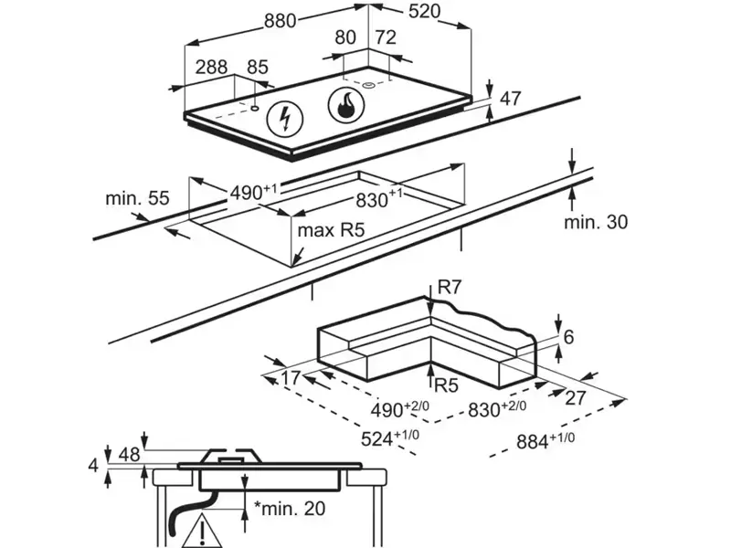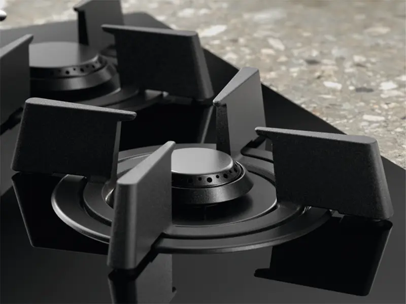 Матові чорні конфорки з вертикальними полум'ями можна мити в посудомийній машині та зберігати до 20 % енергії за рахунок швидкого нагрівання. Точніше півм'я нагріває лише використовуваний посуд для більшої ефективності.