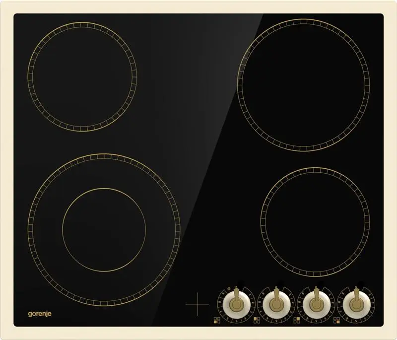 Gorenje EC642CLI — это электрическая варочная панель шириной 60 см в ретро-исполнении. Благодаря бежевому цвету, бронзовым ручкам и стеклокерамической поверхности, она станет стильным элементом кухни в классическом или деревенском стиле.