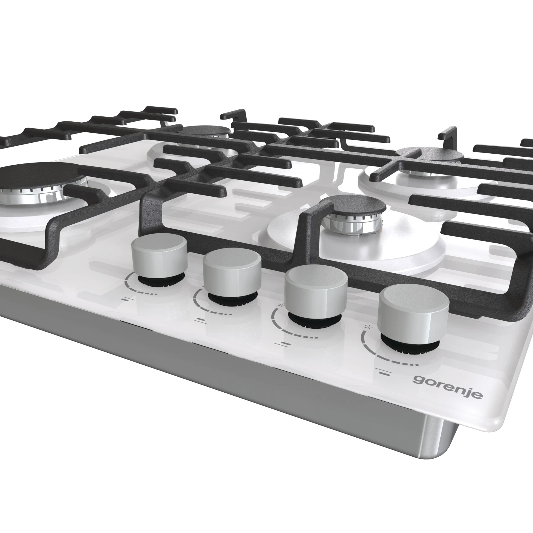 Варильна поверхня Gorenje газова на склі, 60см, чавун, білий
