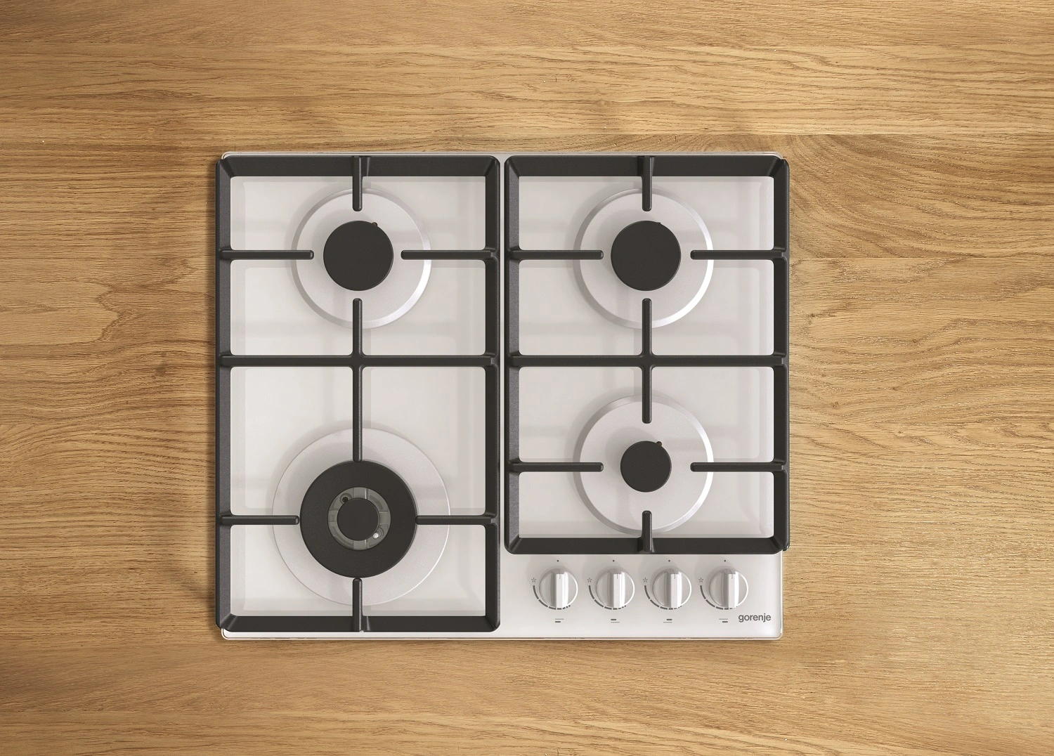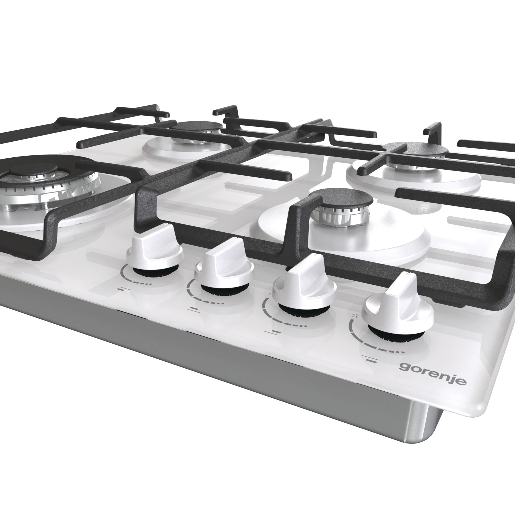 Варильна поверхня Gorenje газова на склі, 60см, чавун, білий