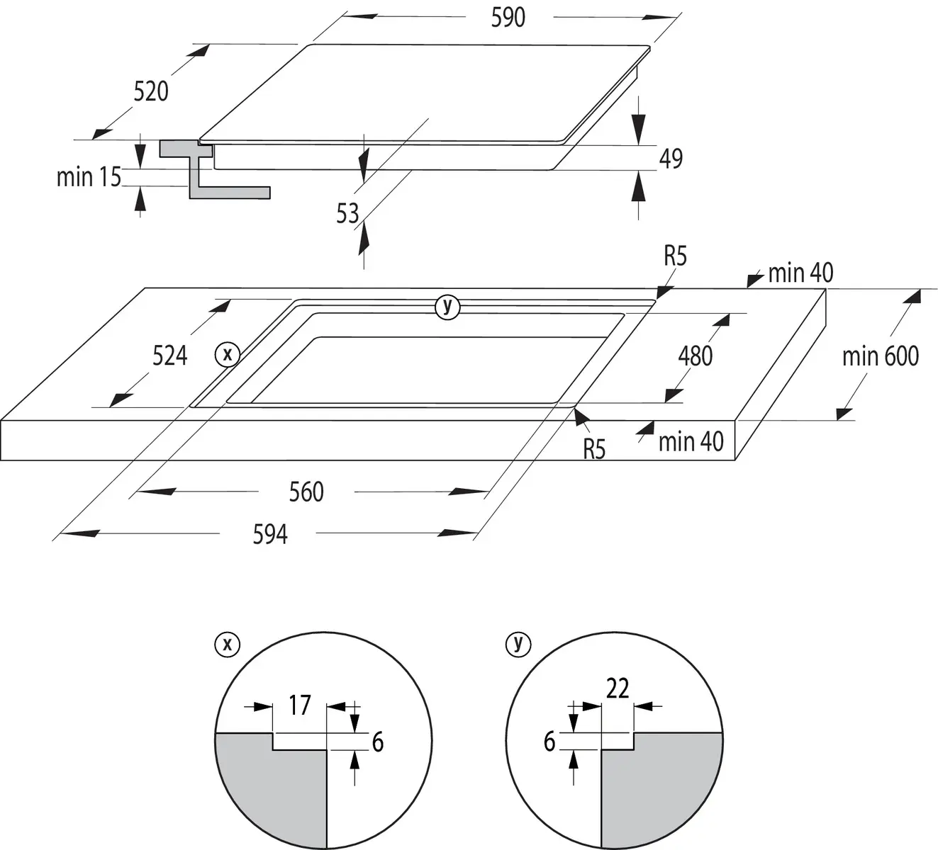 - Размеры для встраивания 56-56.4 × 3 × 48