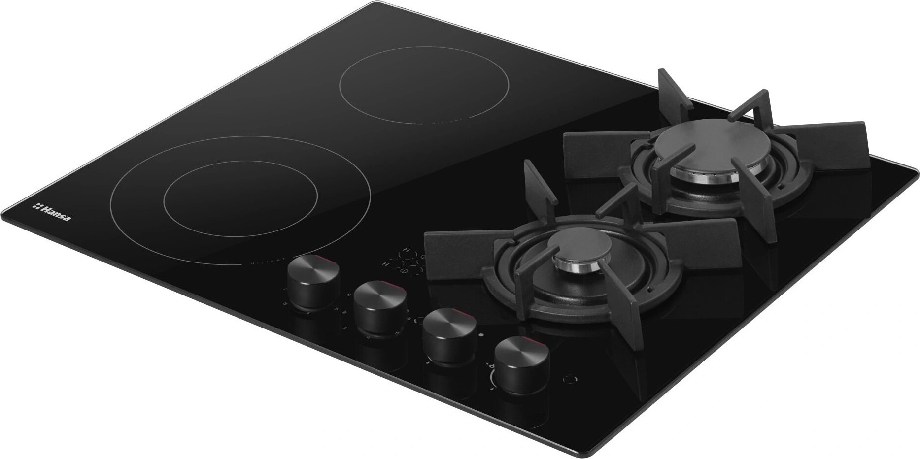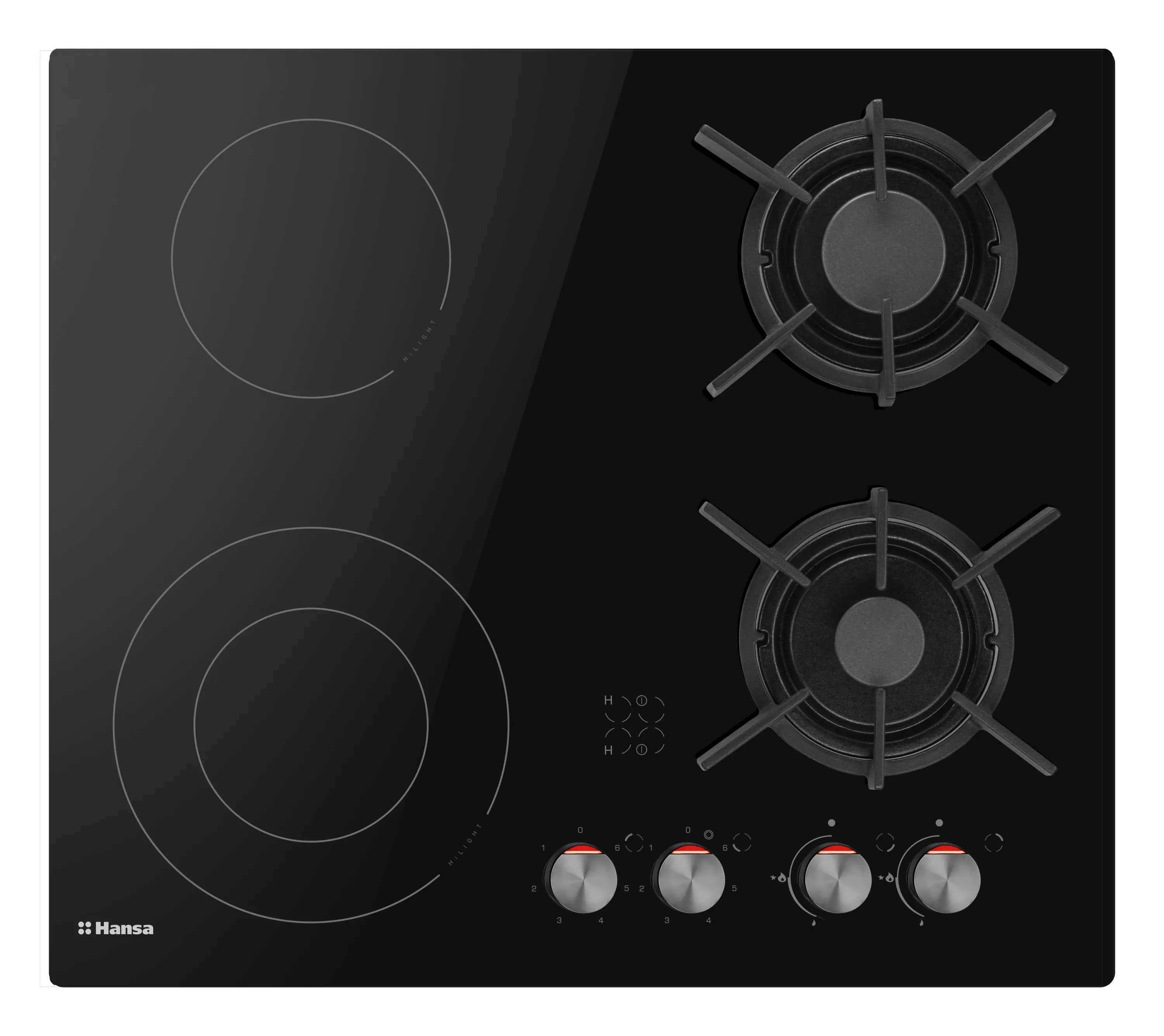 Варочная поверхность Hansa комбинированная (2 газ + 2 электро), 59,2см, расширенная зона, чугун, черный