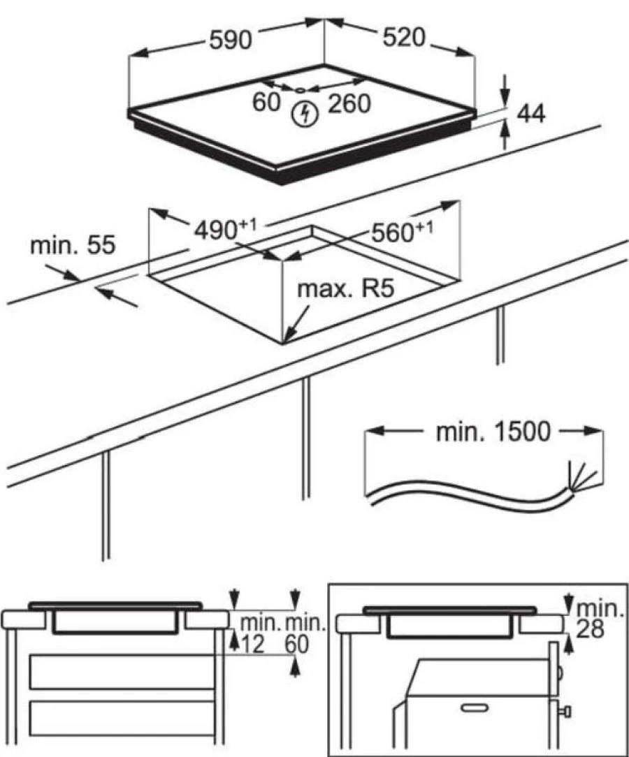 | Розміри ніші для вбудовування: | 4.4 х 56 х 49 см |