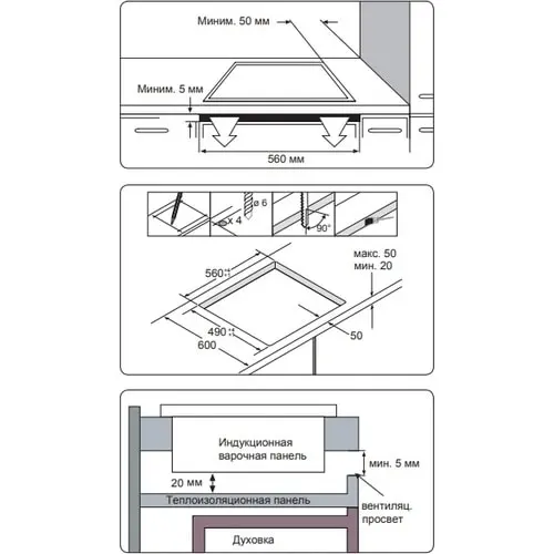 * Розмір ніші для вбудовування (ШxВxГ) 560 x 490 мм