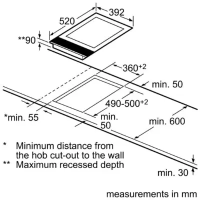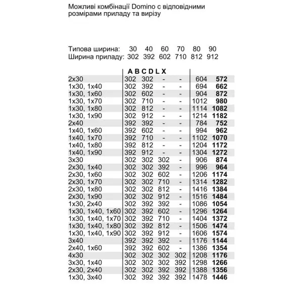 * Можливість комбінування з варильними панелями шириною 60, 80 або 90 см