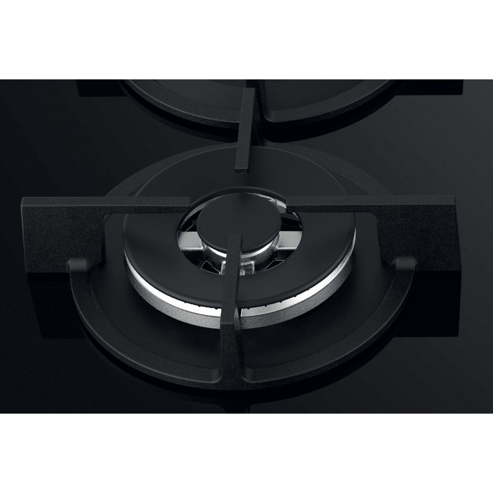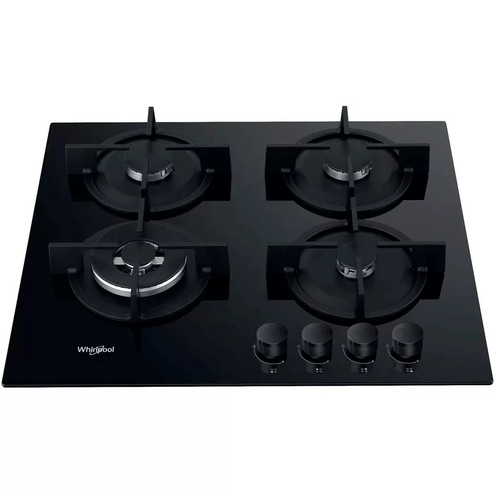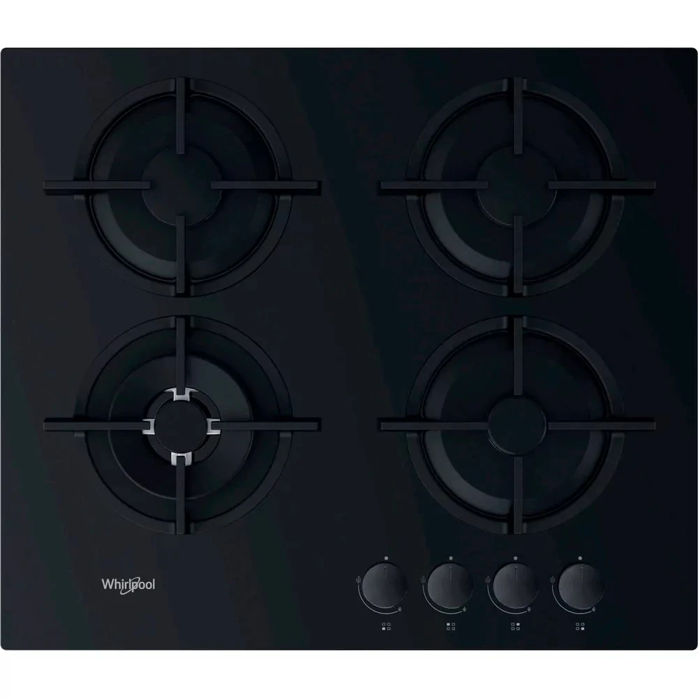 Варильна поверхня Whirlpool газова на склі, 60см, чавун, конфорка з подвійним рядом полум'я, чорний