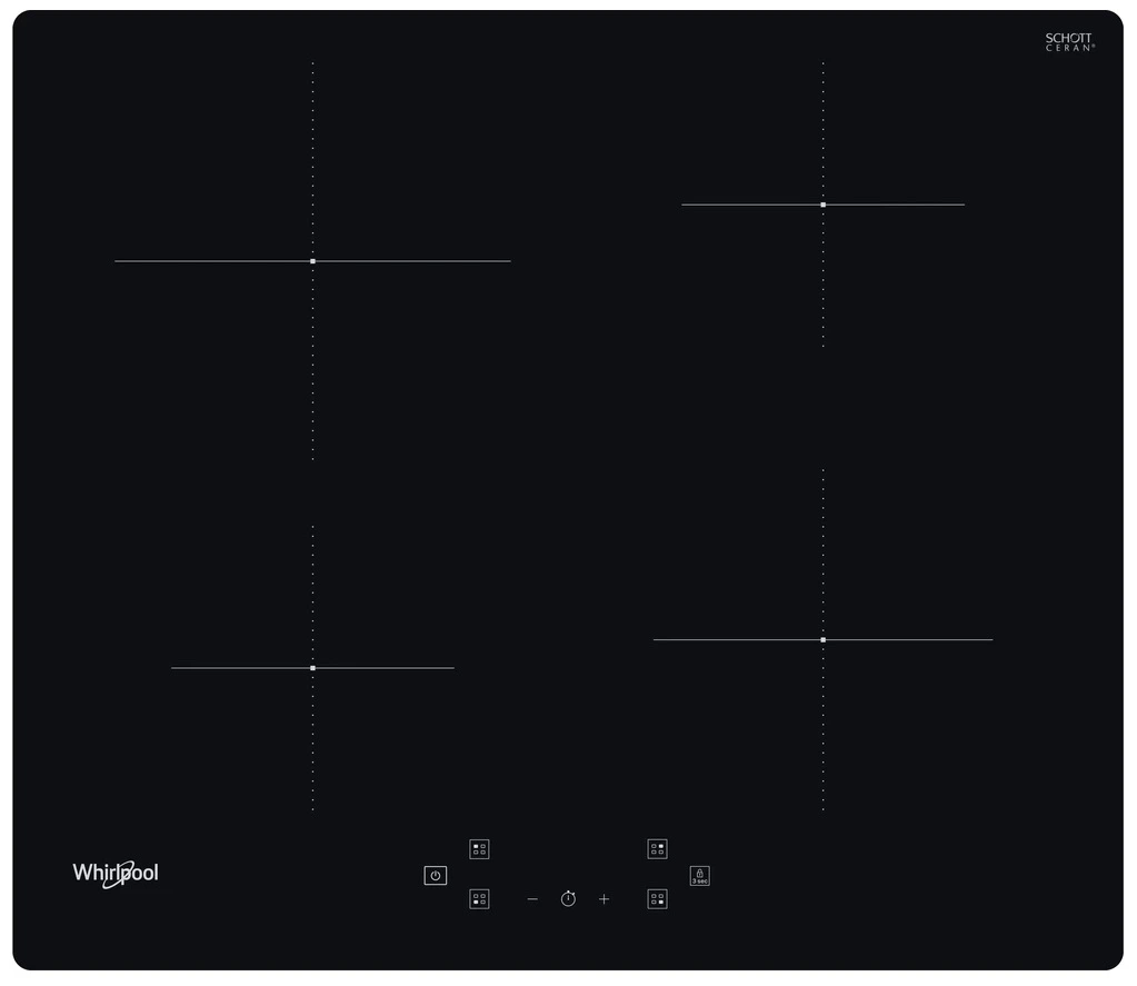 Індукційна склокерамічна варильна поверхня Whirlpool - WSQ4860NE. 4 індукційні зони нагрівання. Технологія яка нагріває безпосередньо посуд, а не варильну поверхню, знижуючи дисперсію тепла та гарантуючи якість результатів.