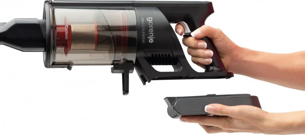 Не потрібно під’єднувати пилосос до зарядної станції. Одним рухом вийміть акумулятор і заряджайте його де зручно. Крім того, якщо придбати додатковий акумулятор, це надасть можливість використовувати пилосос, доки перший