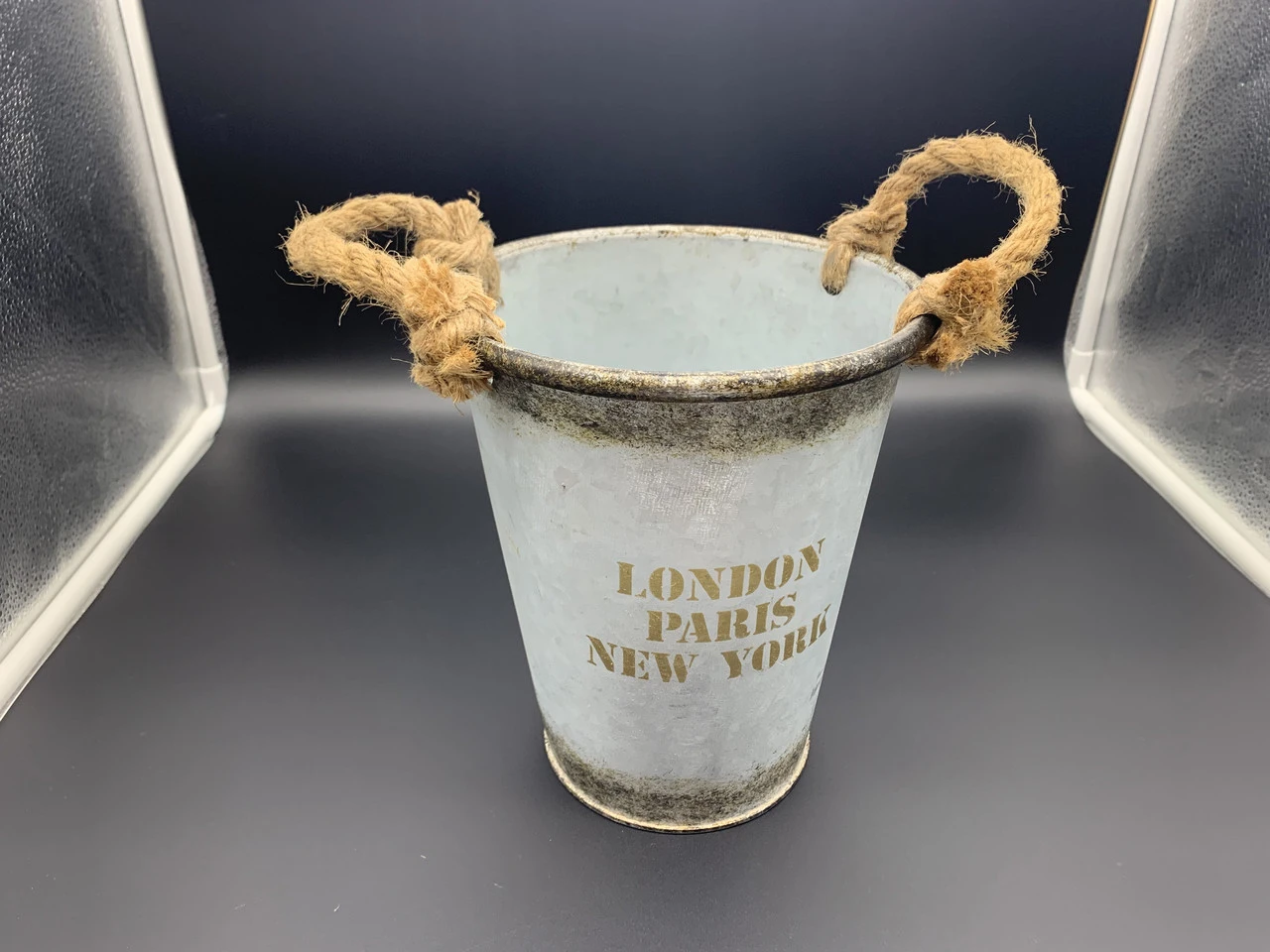 Відерця для декору металеві різнокольорові з візерунком і шнурком. 17х20см