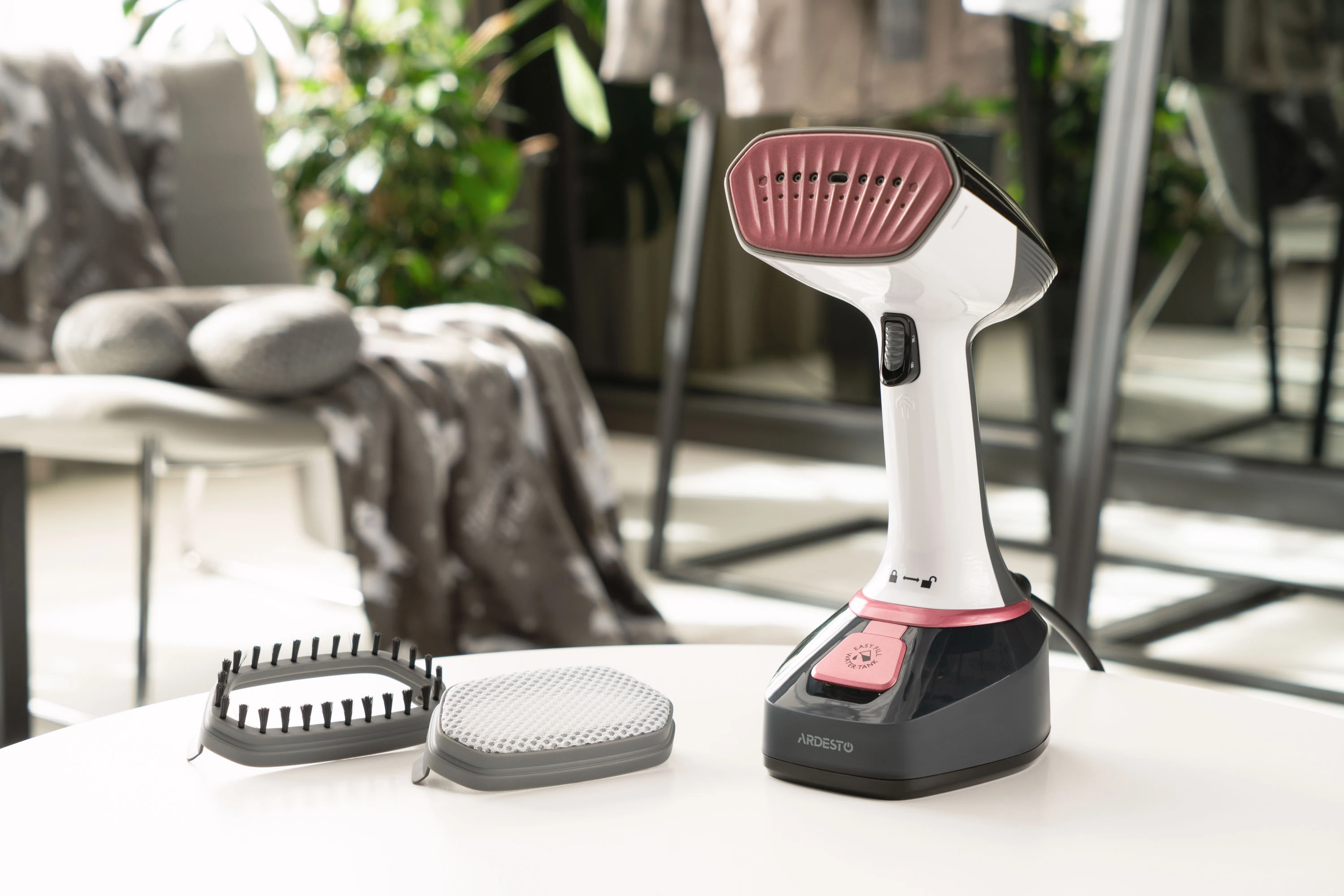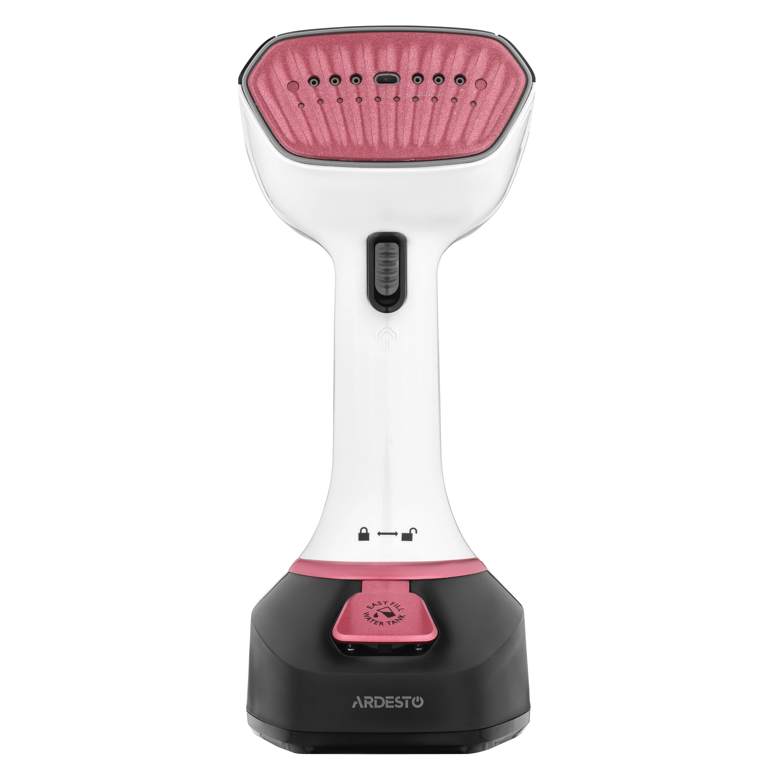 Легкий і компактний ручний відпарювач ARDESTO призначений для забезпечення одягу свіжого вигляду будь-де і будь-коли. Корпус біло-чорного з рожевим кольору з пластику, підошва – керамічна. LED-підсвічування кнопок додає зручності під час користування. Передбачено автоматичне відключення пристрою. Відпарювач забезпечує постійне подавання пари – 22 г/хв завдяки 1 400 Вт. Пристрій оснащено знімним резервуаром для води ємністю 280 мл. У комплекті є дві насадки для делікатних речей та ємність для заливання води.