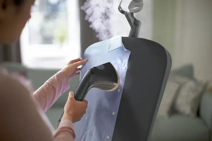Відпарювач Philips 3000 Series STE3170/80. Витрачайте менше часу на прасування одягу з відпарювачем Philips Stand Steamer серії 3000 завдяки вбудованій дошці та відпарювачу з великим гострим наконечником. Захистіть свій одяг від бактерій* і додайте йому ароматної свіжості за допомогою відділення для ароматів MyEssence. Відкидна дошка StyleBoard забезпечує надійну підтримку під час відпарювання. Просто затисніть тканину між паровою пластиною і дошкою для легшого відпарювання та отримання відмінних результатів зверху вниз.