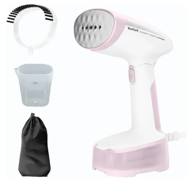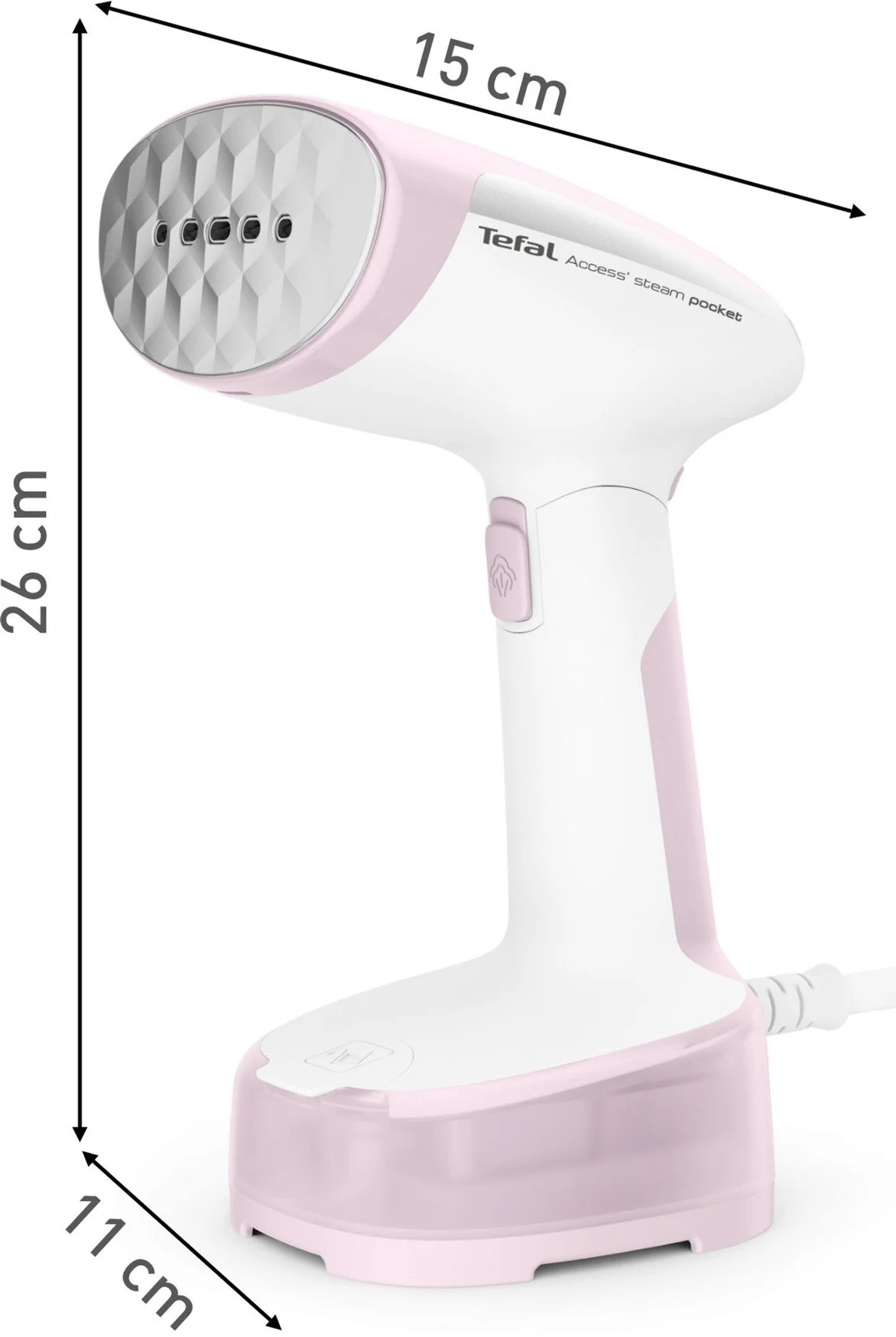 Відпарювач Tefal компактний Access Steam Pocket, 1300Вт, 120мл, постійна пара - 25гр, біло-рожевий