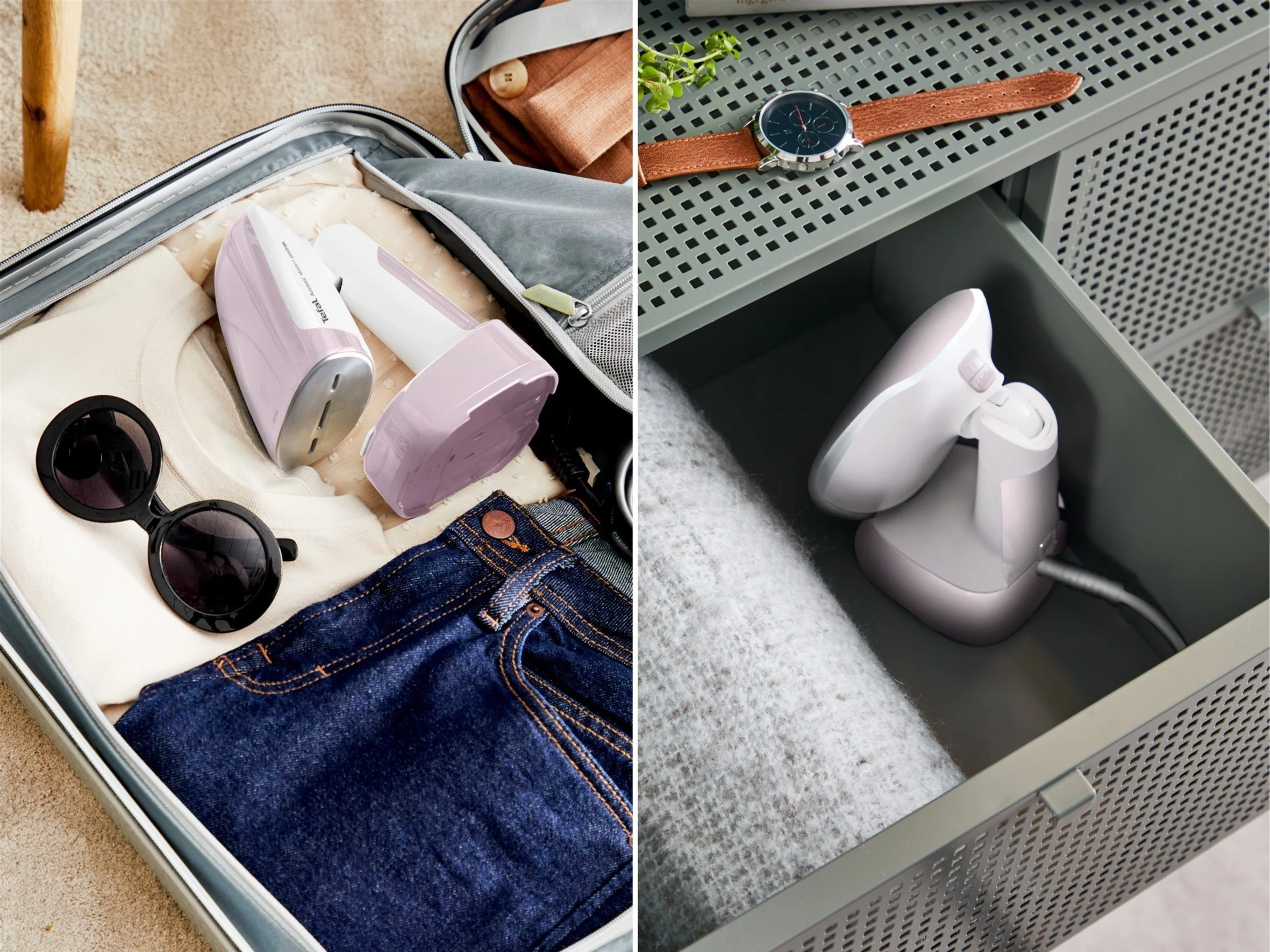 Ручний відпарювач Tefal Access' Steam DT3050E1 забезпечує легкий догляд за одягом удома та в дорозі, а ексклюзивна складна насадка та компактний дизайн полегшують транспортування та зберігання. Ексклюзивна складна головка. Ультракомпактний дизайн з ексклюзивною складаною головкою забезпечує простоту зберігання та максимальну зручність — у форматі вдвічі меншому, ніж у попередніх моделей — для готового до подорожі ручного відпарювача.