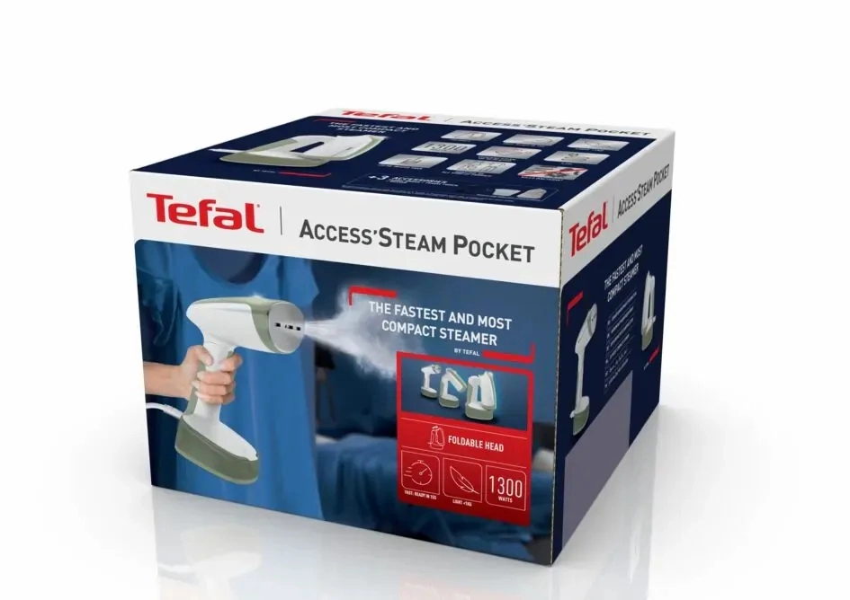 Надкомпактний відпарювач Tefal Access' Steam Pocket DT3053E1 зробить ваш щоденний догляд за одягом легким і швидким. Крім того, він у 2 рази менший за попередні моделі, а це означає, що зберігання та переміщення не потребують зусиль! 15-секундне нагрівання — це все, що потрібно для використання в останню хвилину перед виходом, щоб мати ідеальний вигляд. Відчуйте різницю з ультралегким корпусом. Догляд за одягом ще ніколи не був таким зручним і легким.