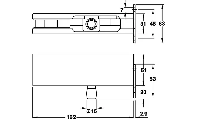 Ответная часть к петле верхней для маятниковых дверей нержавеющая сталь 164.9х71х63мм 98100110