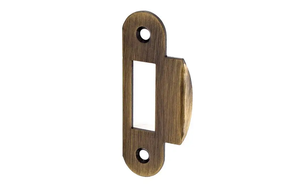 Планка замка, з виступом. Універсальна, права чи ліва по DIN.Матеріал: сталь. Покриття / колір: бронза стара. Розміри планки замка: Висота: 82 мм. Ширина: 22 мм. Товщина: 2 мм. Виступ: 12 мм. Розмір отвору під ригель замка: 12.5 х 34 мм.