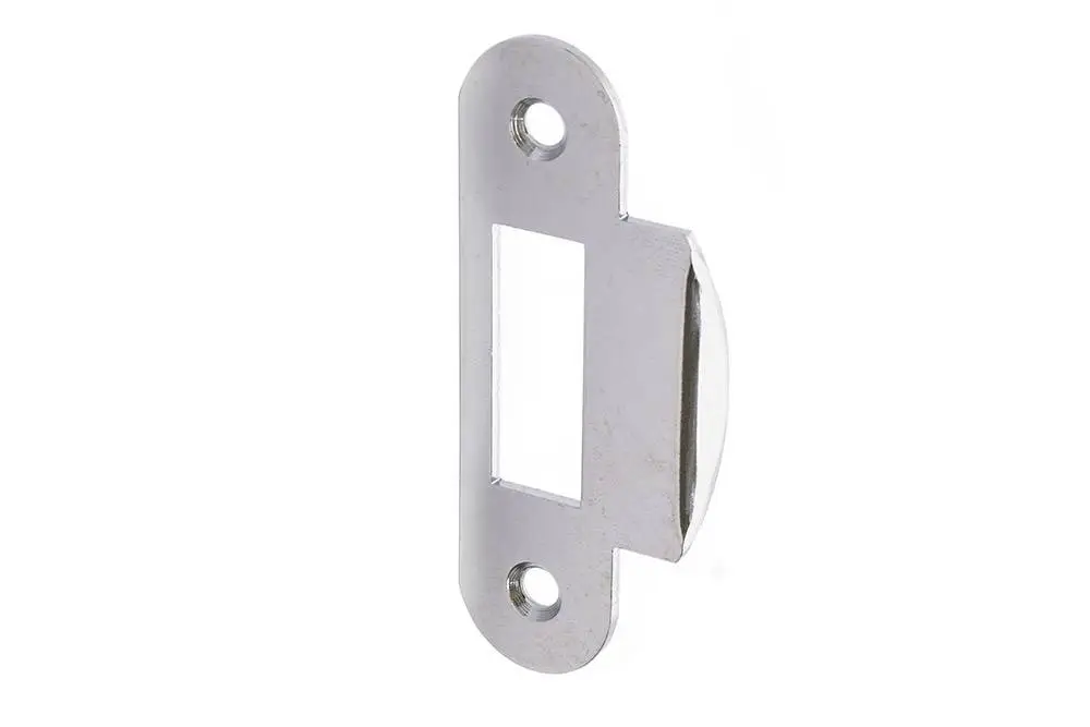 Планка замка, з виступом. Універсальна, права чи ліва по DIN.Матеріал: сталь. Покриття / колір: хромована полірована. Розміри планки замка: Висота: 82 мм. Ширина: 22 мм. Товщина: 2 мм. Виступ: 12 мм. Розмір отвору під ригель замка: 12.5 х 34 мм.