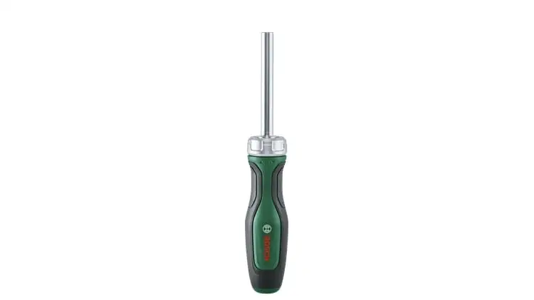 Для складання меблів, ремонту або інших завдань «зроби сам» викрутка-тріскачка Bosch з храповиком на 18 насадок - найкраща у своєму класі для контрольованого та легкого закручування всіх типів шурупів. Тріскачка має порошкове металургійне зубчасте колесо з 36 зубцями та забезпечує крутний момент до 36 Нм. Для швидкої зміни напрямку обертання інтуїтивно зрозуміле металеве кільце можна повертати зліва направо, а центральне положення встановлюється для ручного закручування без тріскачки.