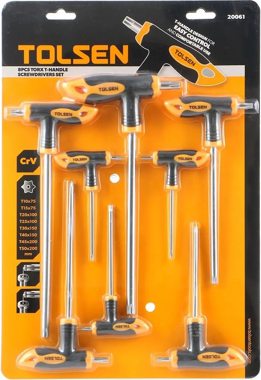 Викрутка Tolsen набір 8шт, Т-подібні, Тorx 10-50, сталь CrV