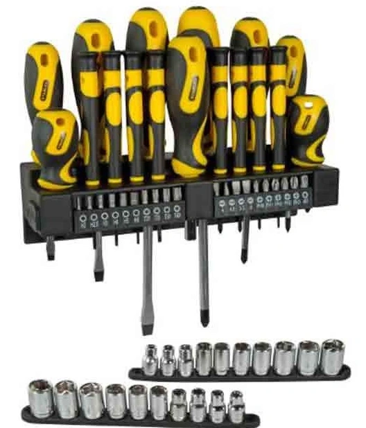 Набір викруток Stanley, що складається з 57 предметів, включає як викрутки з храповим механізмом, так і різноманітні біти. Цей великий набір, супроводжуваний кейсом, пропонує низку рішень для різних типів і розмірів гвинтів.