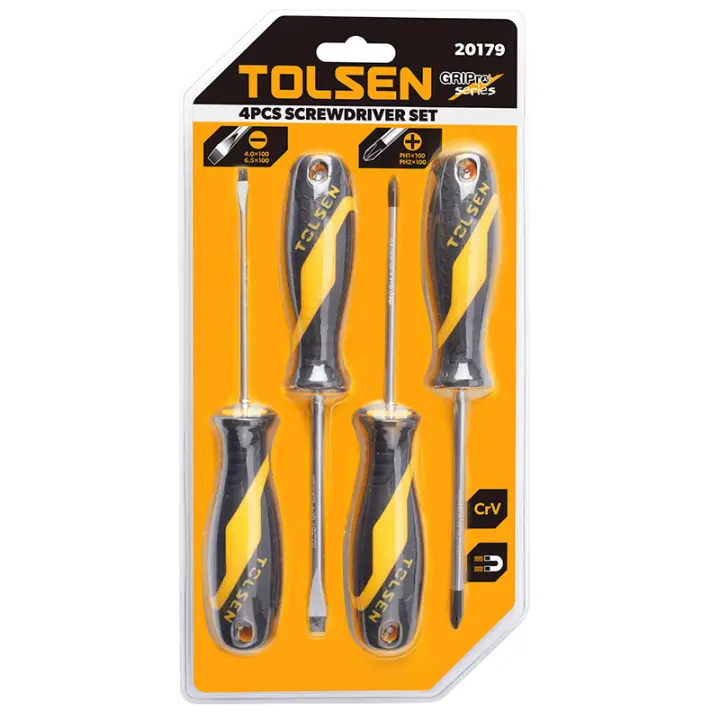 Набір викруток Tolsen 4 шт. — ідеальний комплект для виконання різноманітних завдань з ремонту та монтажу. Високоякісні інструменти з ергономічними ручками забезпечують зручність і точність під час роботи з різними типами кріплень. У наборі представлені викрутки з різними наконечниками для більшої універсальності. Цей набір викруток підходить для домашнього використання, а також для професійних майстрів, гарантуючи надійність і зручність у роботі.