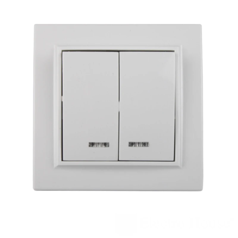 Выключатель двойной с подсветкой, Enzo белый EH-2104 от ElectroSpace – это сочетание элегантного дизайна и надежной функциональности, идеально впишущееся в интерьер любого современного помещения.