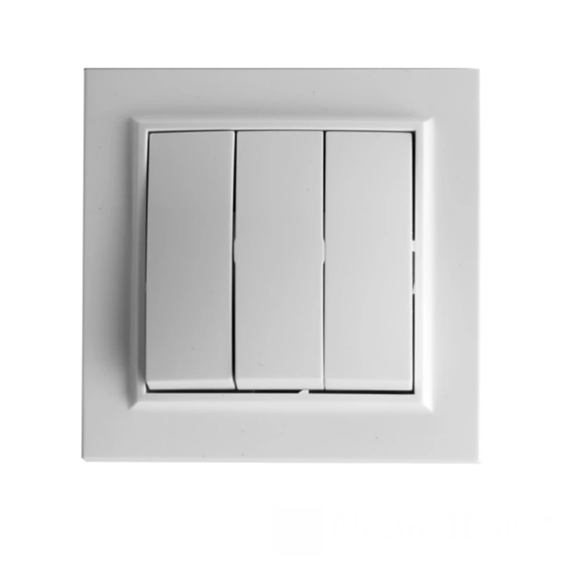 Выключатель тройной, Enzo белый EH-2105 от ElectroSpace – это сочетание элегантного дизайна и надежной функциональности, идеально впишущееся в интерьер любого современного помещения.
