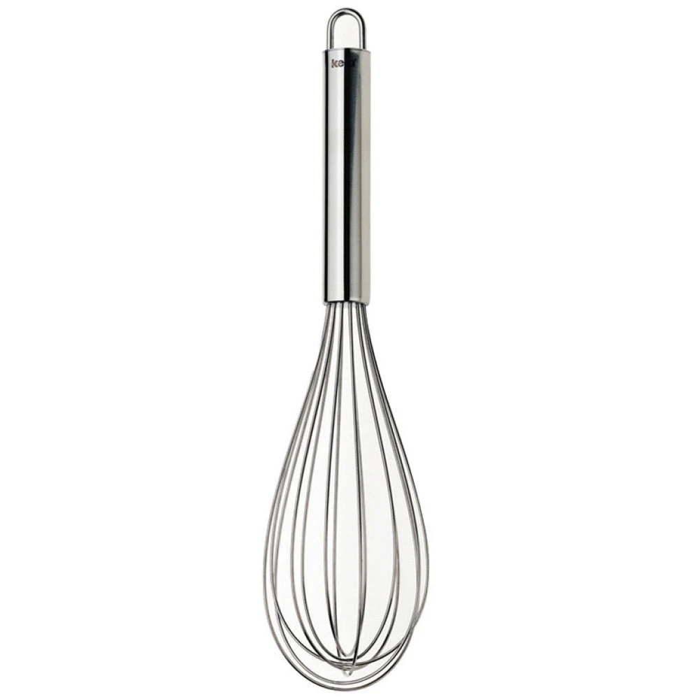 Вінчик KELA з серії Rondo має довжину 32 см, чого цілком достатньо для збивання будь то пишних омлетів на всю сім'ю, або ж тіста для млинців в маленькій мисочці, до вечері на двох. Матеріал з якого зроблений прилад: нержавіюча сталь, а це є гарантією відсутність появ іржі, окислення приладу, і що не менш важливо, запобігає вбирання запахів і смаків. Вінчик досить легкий по вазі і приємний в роботі.]]>