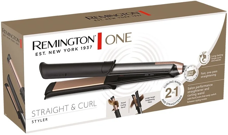 Випрямляч 2в1 Remington One Straight&Curl, 2в1 випрямляч та плойка, режимів-5, 150-230С, кейс т