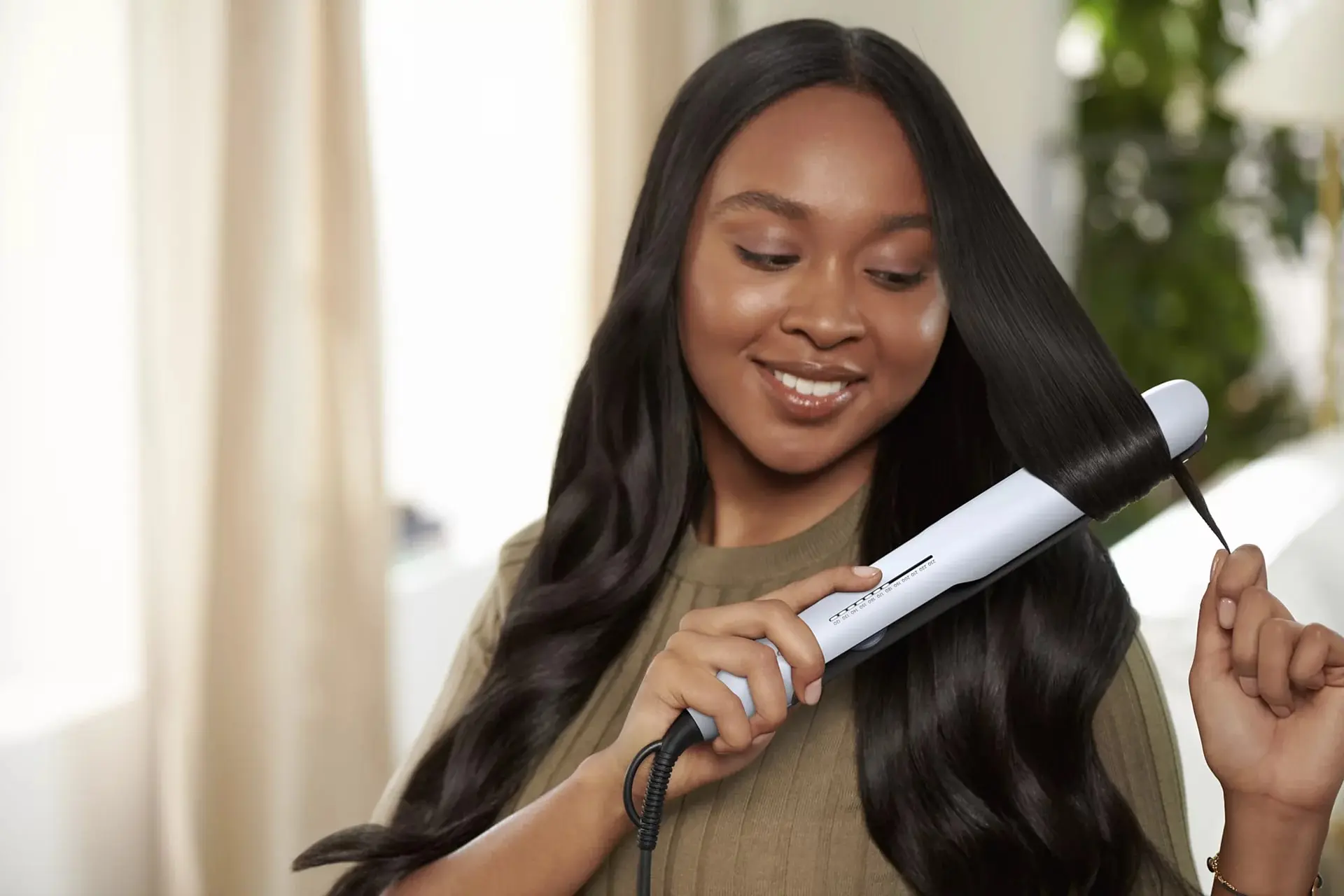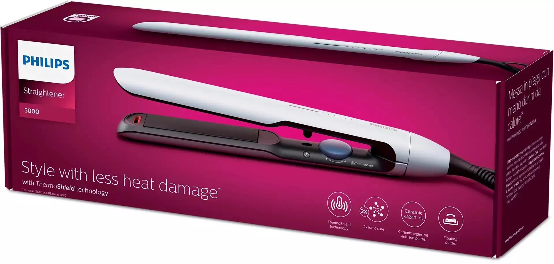 Укладайте волосся за допомогою технології ThermoShield. Для сталої температури від коренів до кінчиків волосся, меншого пошкодження надмірним теплом і здорового вигляду волосся. Підсилюйте блиск волосся завдяки вдвічі більшій кількості іонів для створення різноманітних чудових зачісок без скуйовдження.