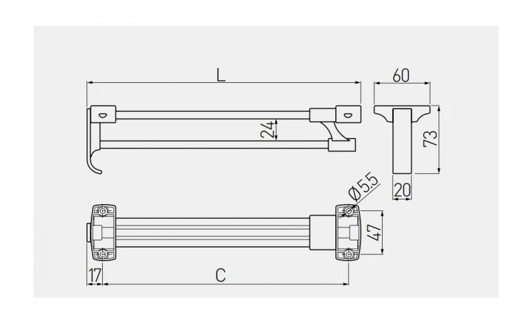 Вешалка выдвижная GTV WW-WSD250-01B усиленная L-250 с крючком