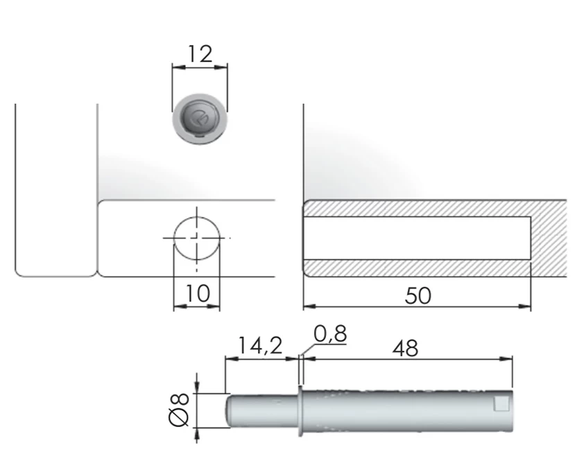 - Длина выталкивателя: С ходом отталкивания 13 мм, что идеально подходит для небольших фасадов.