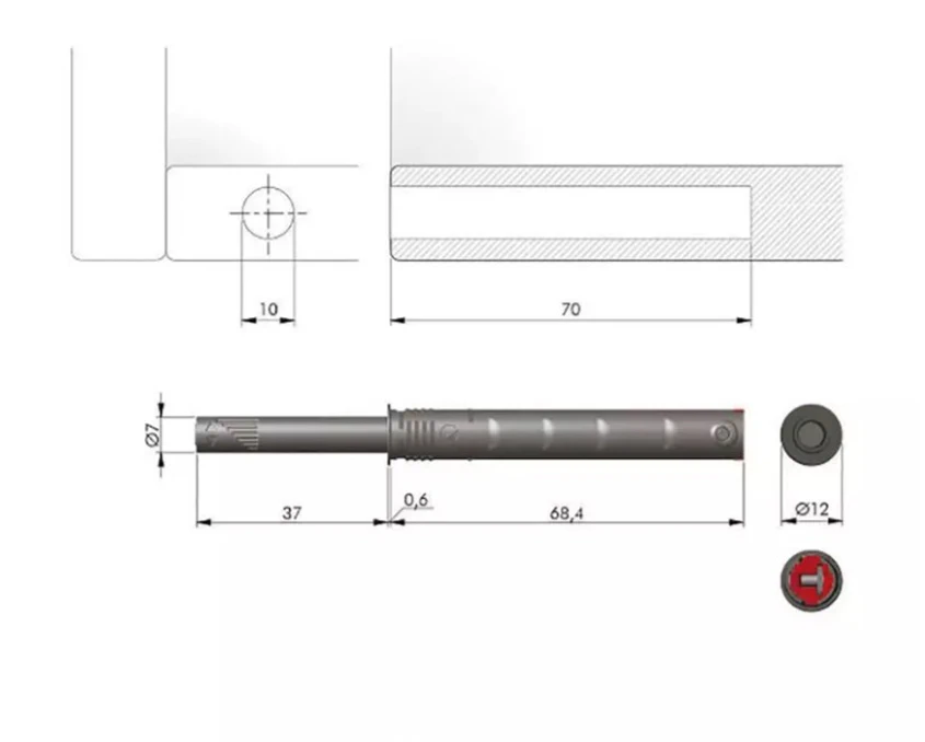 - Регулировка глубины: Удобный диапазон регулировки (от 1,4 мм до 6 мм) обеспечивает точную настройку для идеального отталкивания фасада.
