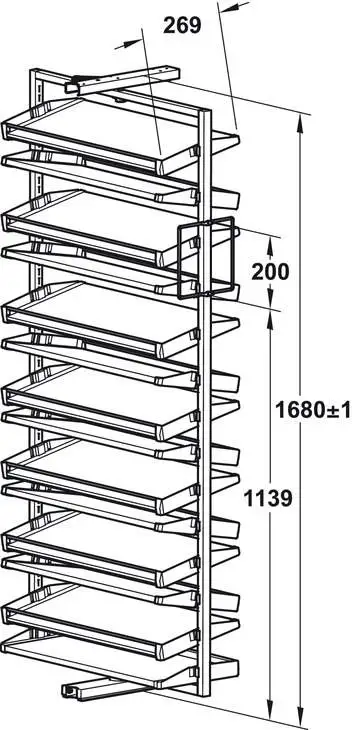 Висувна поворотна на 180 градусів рама в шафу для 50 пар взуття з полицями w 800 мм h 1680 мм d 365