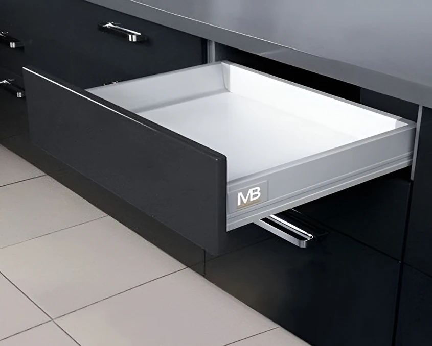 Выдвижная система GTV MODERN BOX длиной 400 мм и низкими боковинами высотой 84 мм идеально подходит для мебели без ручек. Механизм Push to Open позволяет открыть ящик лёгким нажатием на фасад, обеспечивая комфортное использование и современный эстетичный внешний вид.
