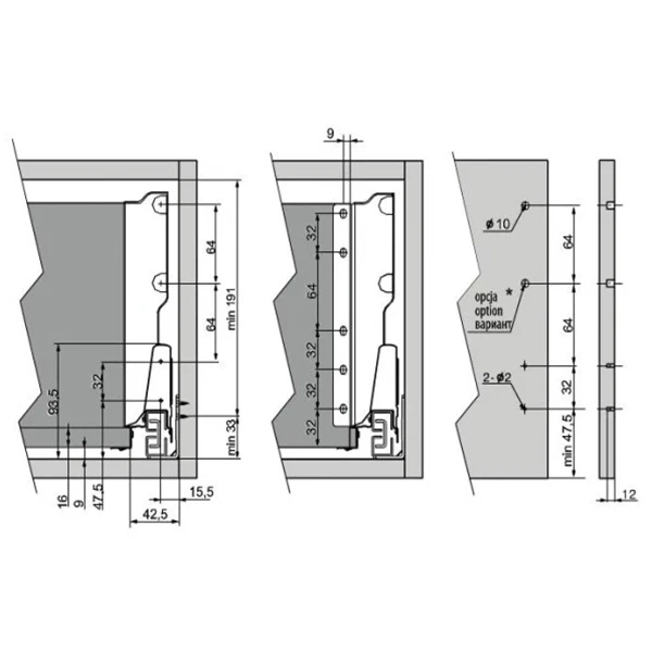 - Регулировка фасада: по вертикали и горизонтали ±1,5 мм