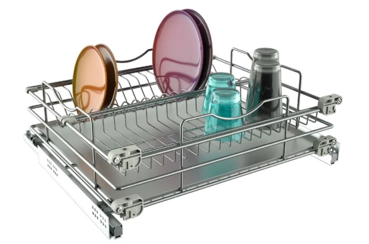Выдвижная сушка для посуды стальные решетки с антикоррозийным серым покрытием полный выдвижение с доводчиком