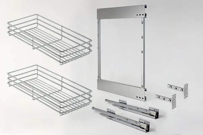Выдвижной механизм Comfort II серебряный, левый, высота рамы 630мм (корпус от 654мм) с держателями ф