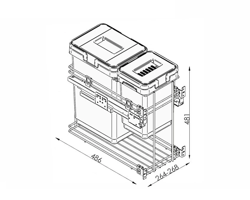 Механизм полного выдвижения со встроенным доводчиком обеспечивает полный и легкий доступ к мусорным ведрам.