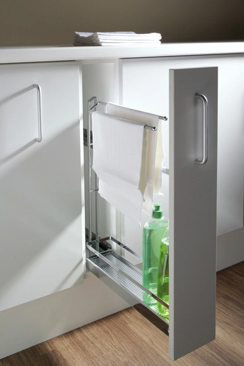 Висувний тримач для рушників Classic (карго), з доводчиком – практичне і зручне рішення для невеликих приміщень. Виріб має компактний і стильний дизайн. Висувний механізм збільшує простір кімнати, дозволяючи сушити рушники без необхідності монтувати додаткові пристосування для їхнього розміщення на відкритому просторі. Міцна конструкція витримує вагу мокрих рушників без ризику деформації.