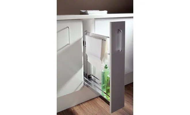 Виготовлений виріб з хромованої сталі, не схильної до корозії. Кріпиться до бічної панелі за допомогою гвинтів, що входять в комплект поставки. Виріб має опорну здатність (тримкість) 12 кг. Висувний тримач не займає багато місця.