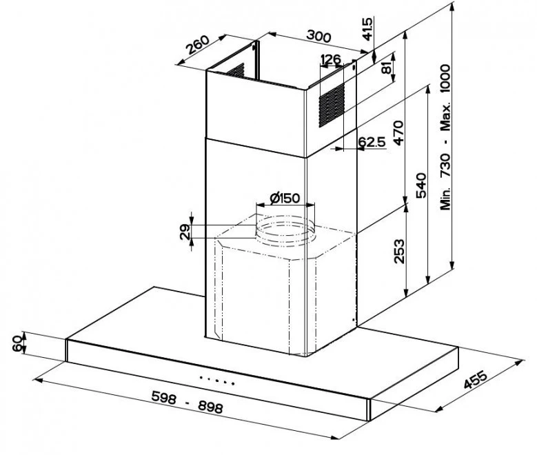 - Диаметр воздуховода, мм 150