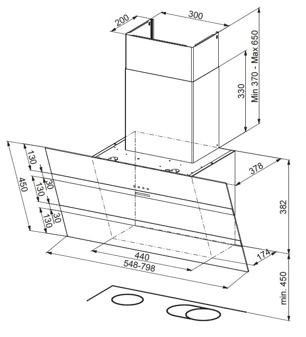 Благодаря наклонной конструкции открывается свободный доступ к варочной поверхности, а сенсорное управление позволяет легко настраивать режимы работы. Устройство оснащено 3 скоростями и интенсивным режимом, а также LED-подсветкой, которая освещает рабочую зону без лишніх витрат энергии.