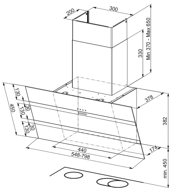 Вытяжка Steelmax EV8 LED WH A55, 55 см, белый / нержавейка, наклонная