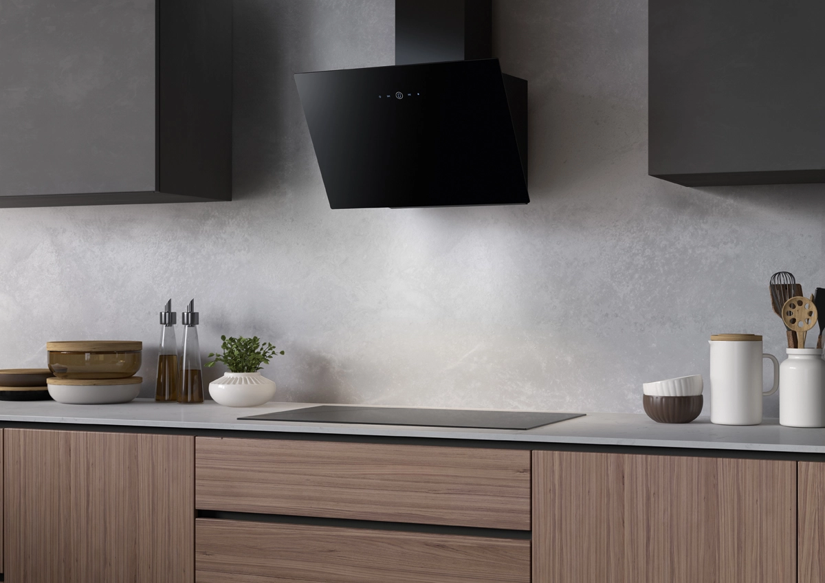 Чёрное закалённое стекло придаёт модели современный и лаконичный внешний вид. Вытяжка оснащена сенсорным управлением, LED-подсветкой и может работать как в режиме отвода, так и в режиме рециркуляции. Три скорости и интенсивный режим позволяют адаптировать работу устройства под потребности пользователя.