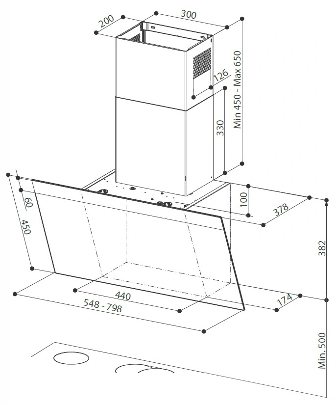 Чёрное закалённое стекло придаёт вытяжке элегантный и современный вид, который гармонично сочетается с другими кухонными приборами. Сенсорное управление позволяет точно и быстро менять режимы, а светодиодное освещение создаёт комфортную зону приготовления.