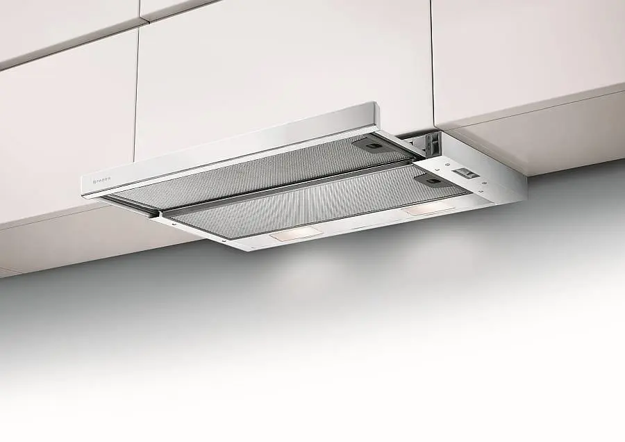 Faber Flexa NG Glass W A60 — это изящная телескопическая вытяжка с передней панелью из белого закалённого стекла. Она органично вписывается в дизайн современной кухни и эффективно устраняет запахи та пар під час готування.